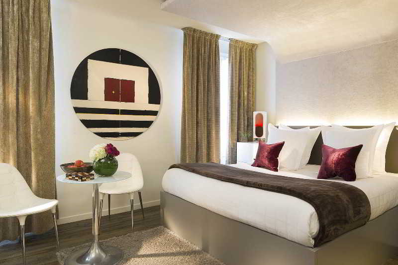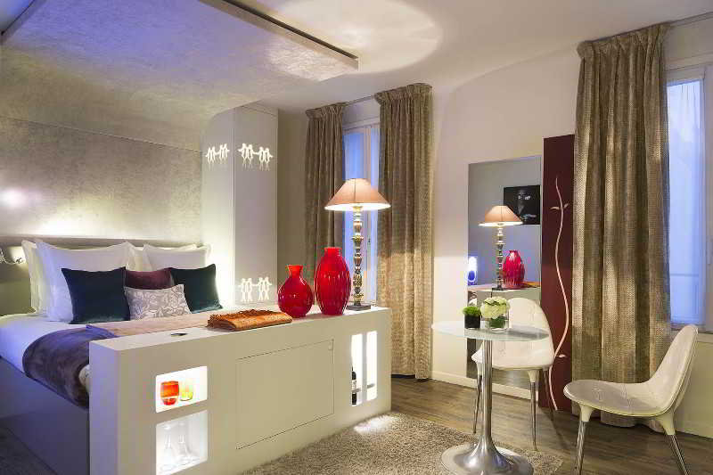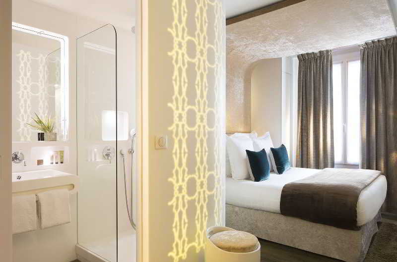 The hotel's facade, known for its Art Deco style, hides an intimate and elegant place that captivates you from the lobby. The modern Zen interior and refined atmosphere, designed by architect-designer Axel Schoenert, promotes rest and relaxation. Find a sense of peace in 41 rooms on 6 floors in a perfect environment designed for comfort: light oak parquet, a subtle mix of white and raw, or hazel velvet curtains. You will find available in all rooms free Wi-Fi internet, TV channels, minibar, safe and in some categories or if desired, you can use the magnificent NightCove to facilitate sleep.