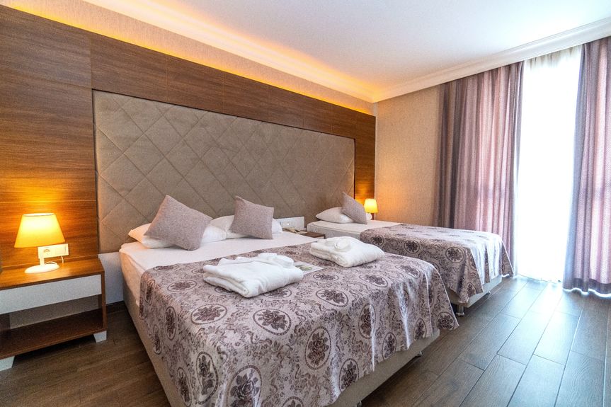 Et komfortabelt og velindrettet værelse med ekstra god plads – perfekt til både par og familier, der ønsker lidt mere komfort under opholdet på Grand Seker Hotel.