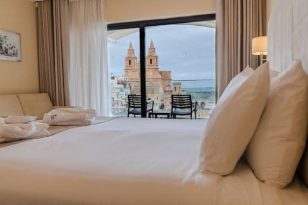 Dette hotel er beliggende i bjergskråningsbyen Mellieha, 1 km fra Maltas største strand, Ghadira. Der ligger restauranter, barer, indkøbsmuligheder og forbindelser med offentlige transportmidler i nærheden. Natklubber ligger ca. 3 km væk, turistcentret Bigibba ligger 4 km væk, det neolitiske tempel ligger 6 km væk, og Gozo ligger 7 km fra hotellet. Ejendommen er beliggende i den nordlige del af øen, kun 25 km fra lufthavnen, 30 minutter fra hovedstaden Valletta. Pool på taget kan kun tilgås af voksne (16 år og derover).