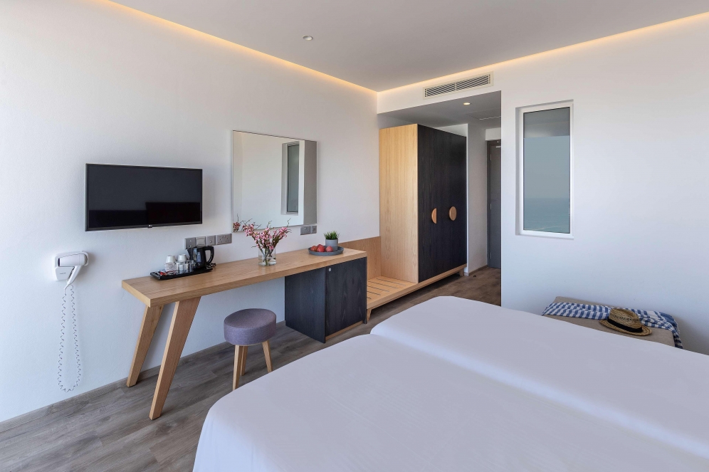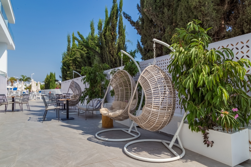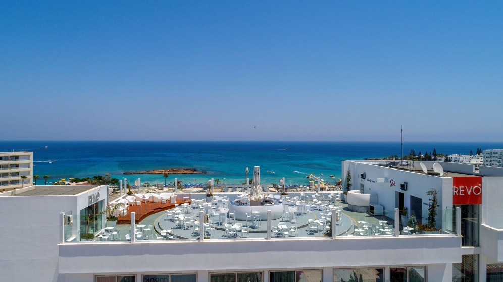 This comfortable hotel is in Protaras, just meters away from the best beach in the area, the renowned Fig Tree Bay. This brand new stylish hotel, offers a total of 56 accommodation units, 2 restaurants, 2 bars and a roof top revolving lounge bar. It offers an outdoor pool with whirlpool and an indoor pool in the basement level. A small fitness room is also available for the more energetic guests. There is also an ice cream parlour on site, next to the outdoor pool. This hotel was constructed in 2018 and opened on June 3rd.