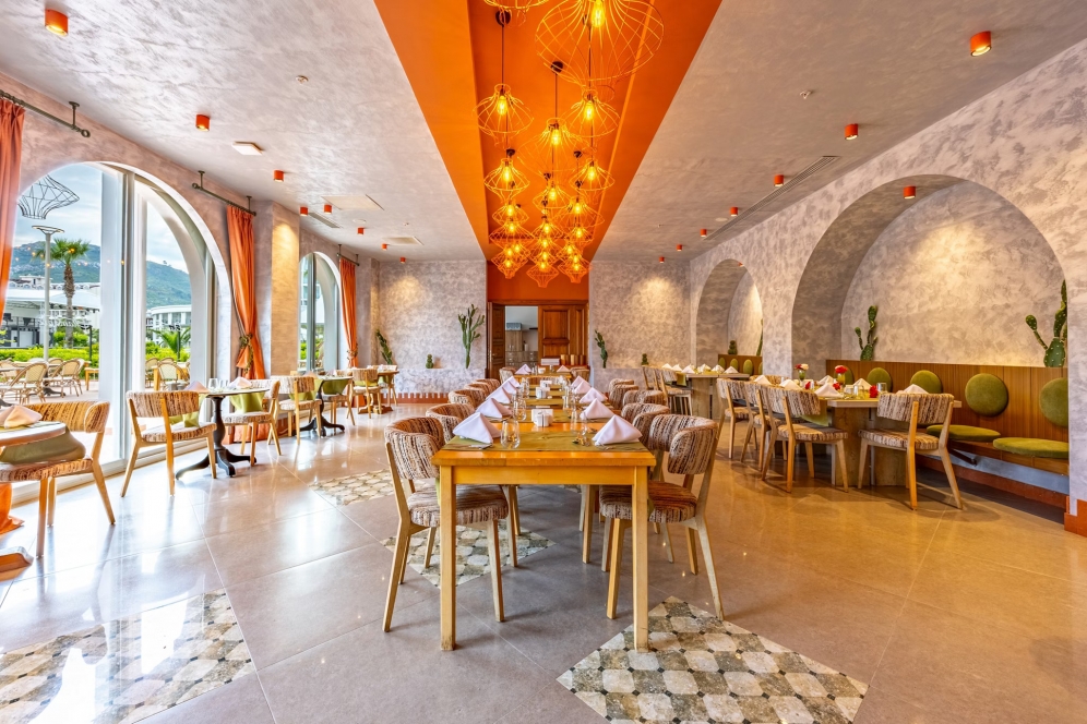 Hotellets All Inclusive‑koncept sikrer, at du kan nyde et stort udvalg af retter og drikkevarer hele dagen. Hovedrestauranten serverer buffet til morgen, frokost og aftensmad, hvor gæster roser den store variation og de mange muligheder – fra internationale klassikere til familievenlige favoritter.