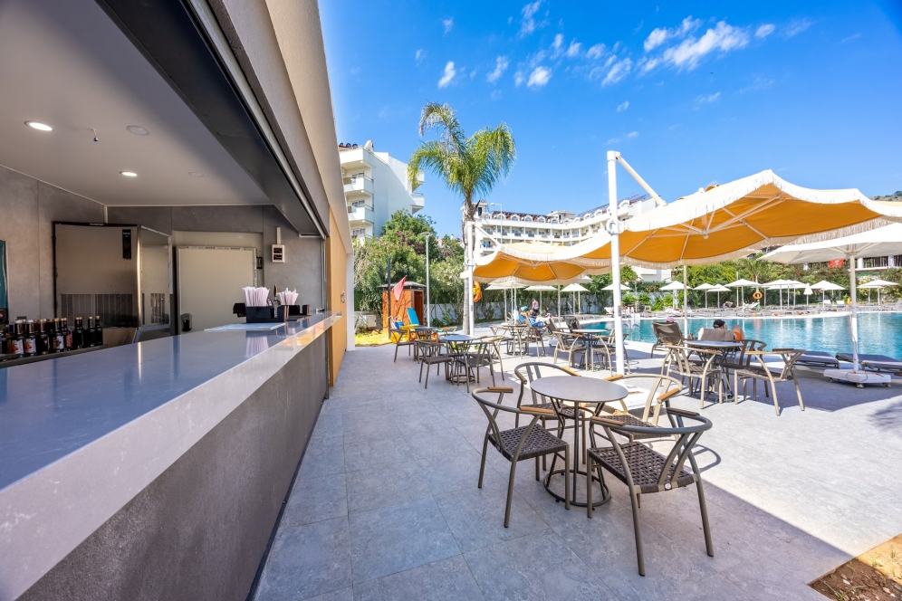 På den private strand kan du nyde gratis solsenge og en afslappende atmosfære langs Marmaris’ lange strandpromenade. Hotellets placering gør det samtidig let at kombinere afslapning ved havet med korte ture ind til byens butikker, restauranter og marina.