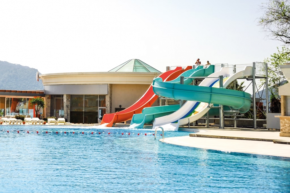Green Nature Diamond Hotel er ideelt for dig, der ønsker masser af sol og vandaktiviteter. Hotellet ligger direkte ud til stranden og råder over både et stort udendørs poolområde, en børnepool samt et område med tre store vandrutsjebaner, som er populært blandt både børn og voksne.