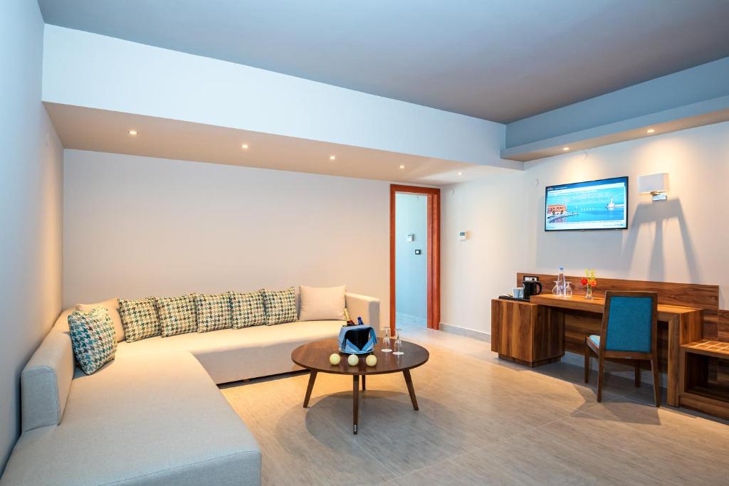 Solimar Aquamarine Hotel is superbly situated on the western coast of Crete Island, near Chania, only a few meters away from the sandy beach of Pirgos Psilonerou, in between the endless beaches of Gerani and Maleme, just 1km away from Gerani, the official center of the newly established municipality of Platanias, 4km from Platanias town, the most organized and popular tourist region of the district of Chania, 14km away from the city center of Chania, 27km from the International Airport and 20km from the port of Souda.